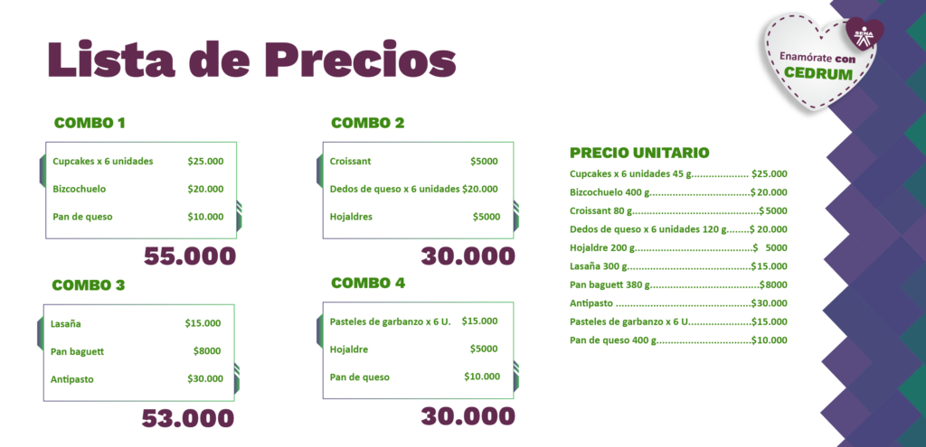 Nuestros Combos Comprar Ahora Nuestros productos Comprar Ahora "Descubre nuestros irresistibles combos y déjate conquistar por su increíble sabor." Eleva tu experiencia con sabores auténticos CombosEleva tu experiencia culinaria con nuestro combo, una fusión de sabores innovadores que harán de cada comida un momento especial.. Eleva tu experiencia gastronómica con sabores únicos y auténticos, preparados por manos expertas Compra Ahora Combo 1Productos artesanales diseñados y elaborados por nuestros aprendices, fusionando creatividad y técnicas tradicionales Combo 2Una selección de alimentos y productos gastronómicos preparados por aprendices, resaltando lo mejor de la cocina local. Combo 3Productos típicos que resaltan lo mejor de la gastronomía local, preparados con ingredientes frescos y técnicas tradicionales. Combo 4 Bizcochos y otros productos de panadería recién horneados, con recetas tradicionales y toques modernos, todos hechos por nuestros aprendices.